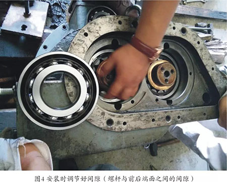 空壓機(jī)機(jī)頭的使用壽命就是其中軸承的使用壽命,機(jī)組軸承對(duì)空壓機(jī)機(jī)頭使用壽命有著重要的影響。隨著空壓機(jī)的長(zhǎng)周期生產(chǎn)運(yùn)行,空壓機(jī)機(jī)頭大小軸承必然會(huì)產(chǎn)生磨損,從而導(dǎo)致螺桿產(chǎn)生軸向竄動(dòng)值及徑向竄動(dòng)值增大,該變化會(huì)讓螺桿與螺桿之間、螺桿與主機(jī)殼體及前后端面之間的間隙發(fā)生變化。該間隙變化在軸承壽命期限內(nèi)是正常的、允許的,而由此產(chǎn)生的空壓機(jī)產(chǎn)氣量衰減及傳動(dòng)電機(jī)負(fù)荷增加也是正常的、允許的。但當(dāng)軸承磨損及主機(jī)配合間隙超過(guò)允許的極限量后,就會(huì)導(dǎo)致螺桿的軸向竄動(dòng)值及徑向竄動(dòng)值增大,該變化會(huì)讓螺桿與螺桿之間、螺桿與主機(jī)殼體及前后端面之間的間隙發(fā)生變化,就可能發(fā)生機(jī)頭卡死故障。