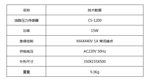 主機(jī)、220V電源線、油路壓力傳感器、控制線