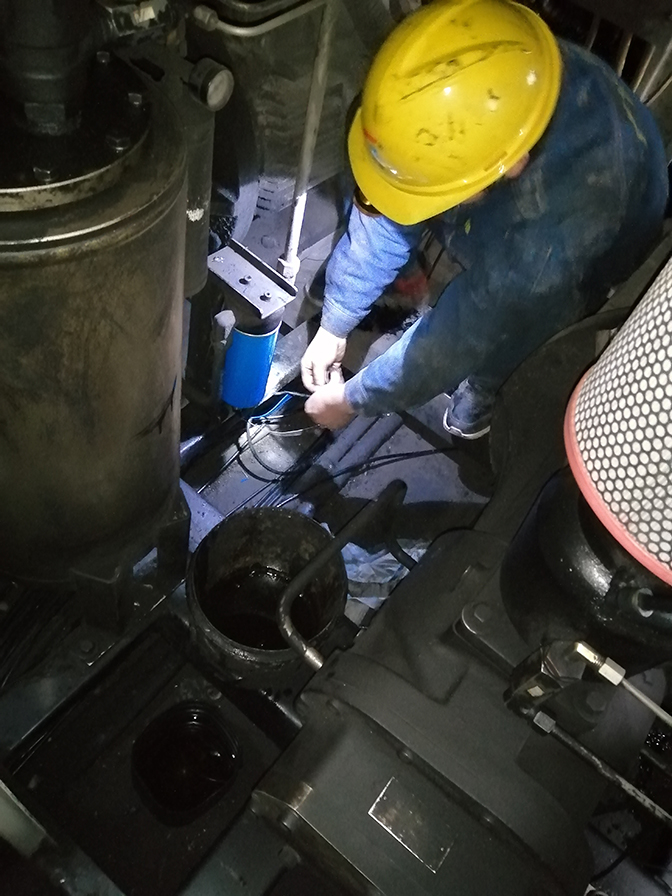 廣眾技術(shù)人員安裝空壓機在線監(jiān)控系統(tǒng)中