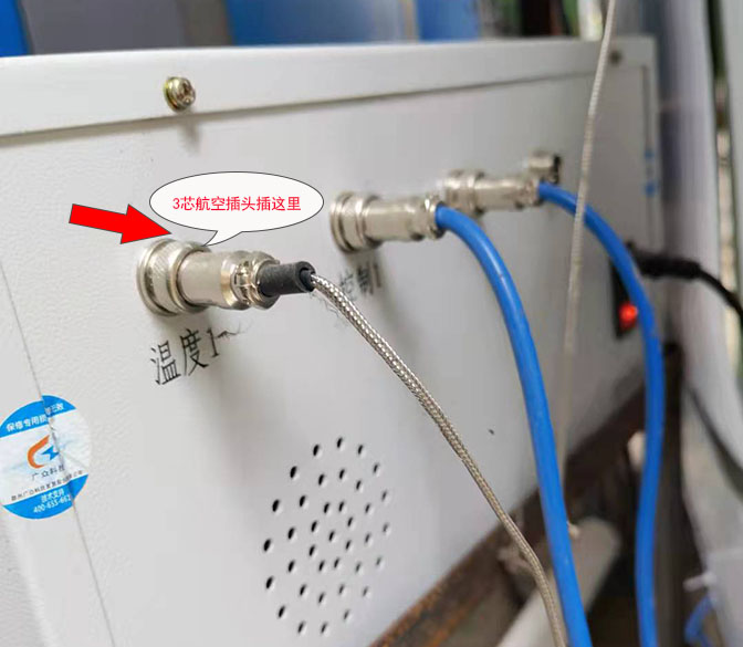 KZB-3型儲氣罐超溫保護裝置安裝中,溫度傳感器3芯航空插頭要注意與后面板的“溫度”字樣對應。見下圖: