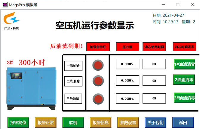 油濾監(jiān)測提醒功能,當油濾出現(xiàn)堵塞及油濾到期時,及時提醒更換油濾,當油濾堵塞時,立即停機并報警。
