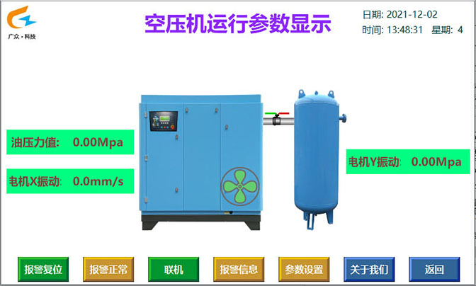 此項(xiàng)晉神磁窯溝煤礦安裝的產(chǎn)品,除了空壓機(jī)斷油保護(hù)功能外,還包含了電動(dòng)機(jī)的X軸、Y軸振動(dòng)監(jiān)測(cè),本產(chǎn)品能夠準(zhǔn)確檢測(cè)空壓機(jī)的油路是否缺油、少油、斷油,當(dāng)出現(xiàn)異常時(shí)候聲光報(bào)警提示,并記錄故障時(shí)間,超過設(shè)定值時(shí)能自動(dòng)控制空壓機(jī)緊急停機(jī);能準(zhǔn)確檢測(cè)空壓機(jī)的電機(jī)振動(dòng)幅度大小,當(dāng)出現(xiàn)異常時(shí)候進(jìn)行聲光報(bào)警提示并記錄故障時(shí)間,超過設(shè)定值時(shí)自動(dòng)控制空壓機(jī)緊急停機(jī)。