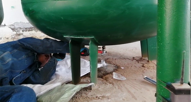 2,艱苦的儲氣罐自動排水改造,注意看儲氣罐下面的冰