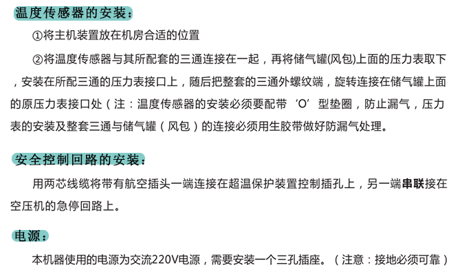 KZB-3型空壓機風包(儲氣罐)超溫保護裝置安裝注意事項: