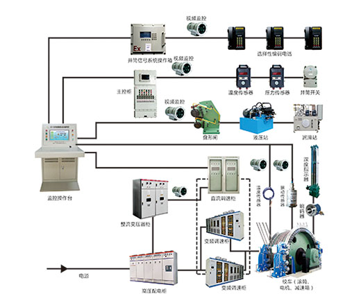 本系統(tǒng)可以實時監(jiān)測提升機各種運行參數(shù),發(fā)生故障實時報警、控制。運行狀態(tài)監(jiān)控主要包括:提升方向、提升高度、提升速度、提升加/減速速度、等速過速保護、爬行區(qū)限速保護、井口到位、井口過卷、變頻故障、緊急停車、提升勾數(shù)記憶、打點數(shù)記憶等。液壓制動系統(tǒng)的監(jiān)測:閘瓦間隙、一級制動油壓、二級制動油壓、制動盤偏擺度、空動時間、液壓站殘壓等。電動機及傳動部分監(jiān)測:電機工作電壓、電流、減速器各軸瓦溫度、主軸軸瓦溫度、電機負荷瓦、減速器油壓、油溫等。