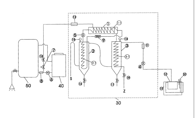2,水-水交換器的兩端分別接通廢水池和吸熱交換器的進(jìn)口。