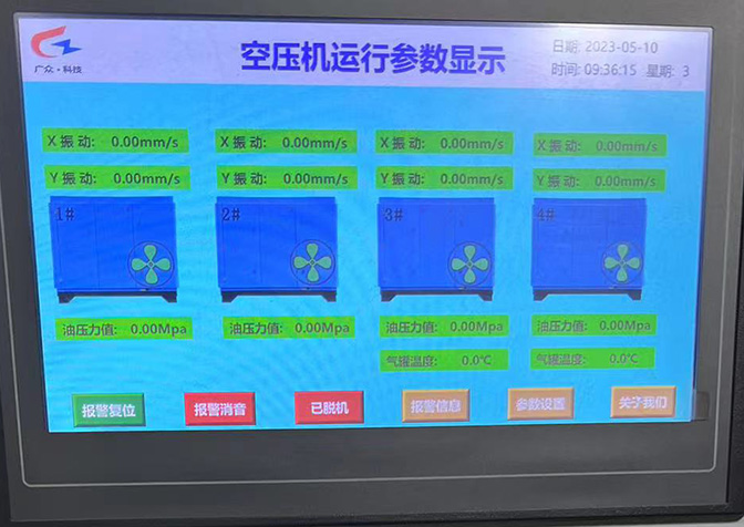 長樂堡煤礦空壓機(jī)斷油綜合保護(hù)裝置顯示頁面如下:
