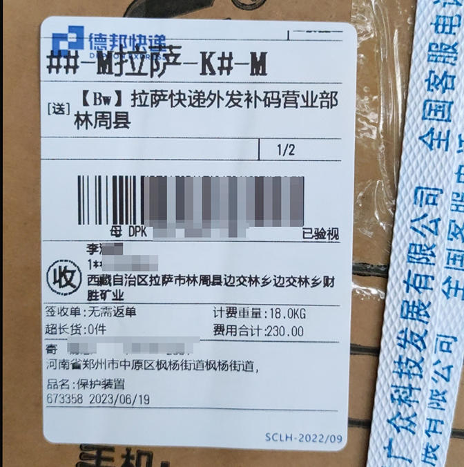 公司發(fā)往西藏財勝礦業(yè)的空壓機(jī)風(fēng)包(儲氣罐)超溫保護(hù)裝置,采用的德邦快遞運(yùn)送方式運(yùn)往目的地。鄭州廣眾科技發(fā)展股份有限公司,位于交通樞紐鄭州市,在日常經(jīng)營過程中,公司采用快遞方式能及時將產(chǎn)品送到用戶所在地,滿足用戶的使用要求。