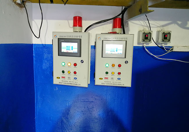 安裝的空壓機綜合保護裝置,包含空壓機斷油保護功能、電動機振動監(jiān)測功能。