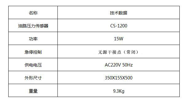 四,ZBK380型空壓機斷油保護裝置技術(shù)參數(shù):