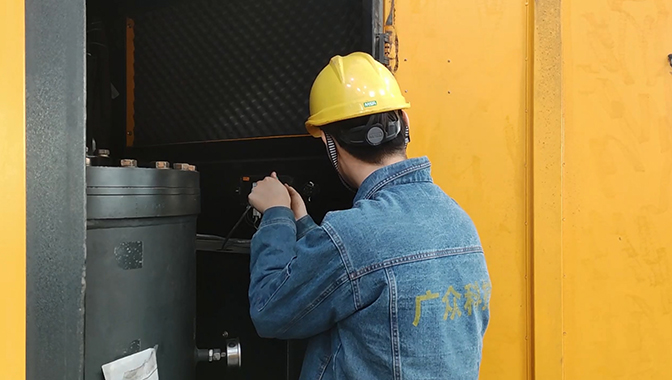 廣眾工程師在現(xiàn)場安裝空壓機斷油保護裝置
