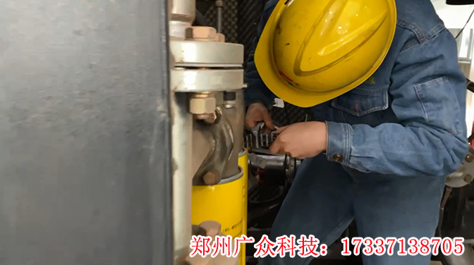 鄭州廣眾工程師在現(xiàn)場安裝空壓機斷油保護裝置