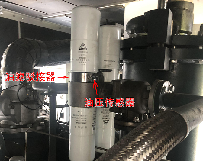 3,空壓機斷油保護裝置根據壓力傳感器的測量上傳數據結果,觸發(fā)連鎖停機,切斷空壓機急停開關,空壓機停機。